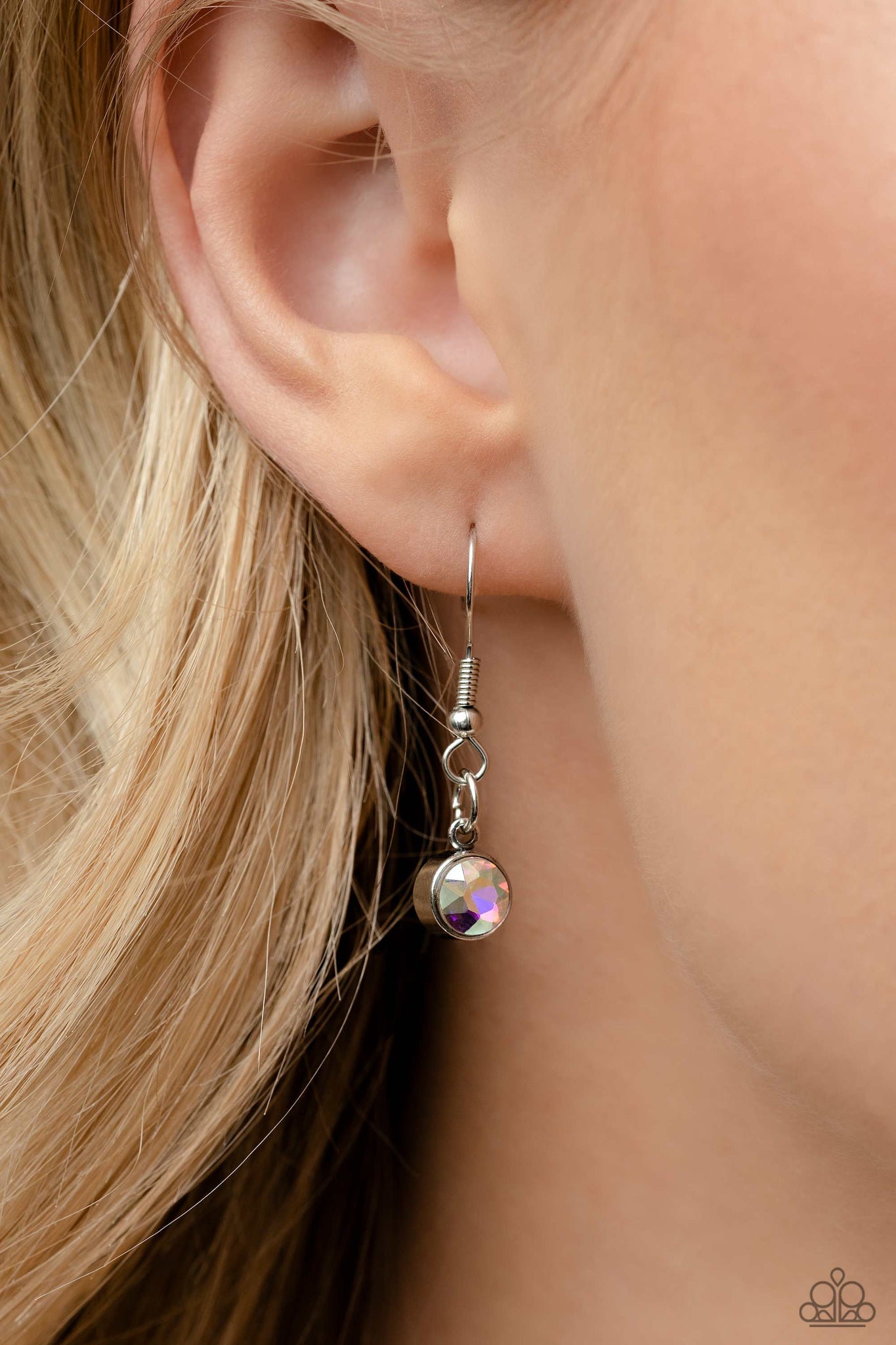 Encased within thick, pronged, elevated silver settings, a geometric collection of fuchsia, light blue, dark blue, and iridescent rhinestones, featured in square, teardrop, and round shapes coalesces down the neckline for a gritty, yet glamorous display. Features an adjustable clasp closure. Due to its prismatic palette, color may vary.